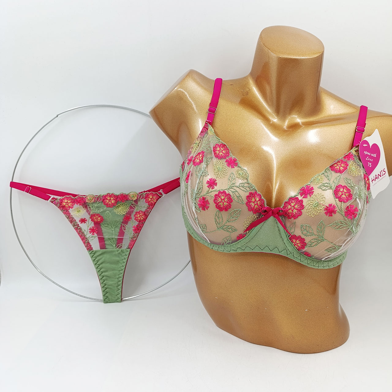 ست سوتین و شورت توری گلدار هانیس مدل 9554