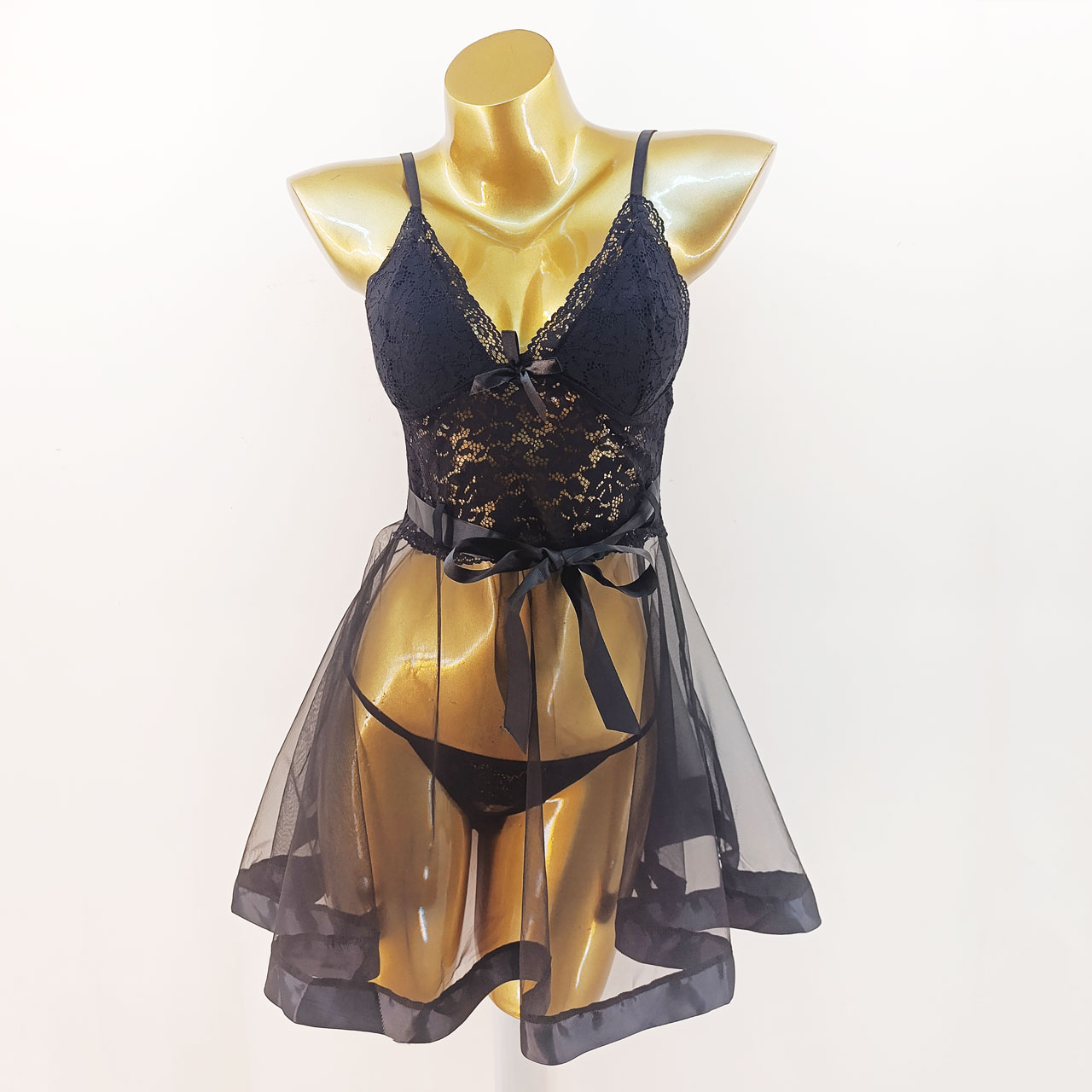 لباس خواب ساتن و گیپور لورنزا مدل 2604