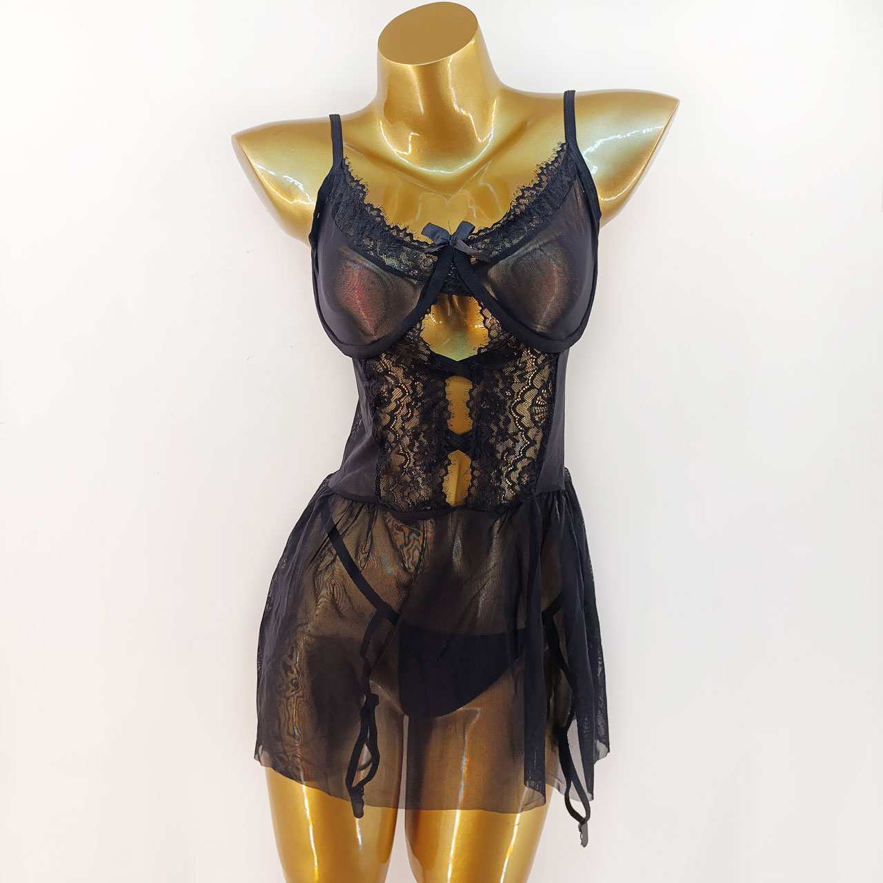 لباس خواب ساتن و گیپور لورنزا مدل 2604