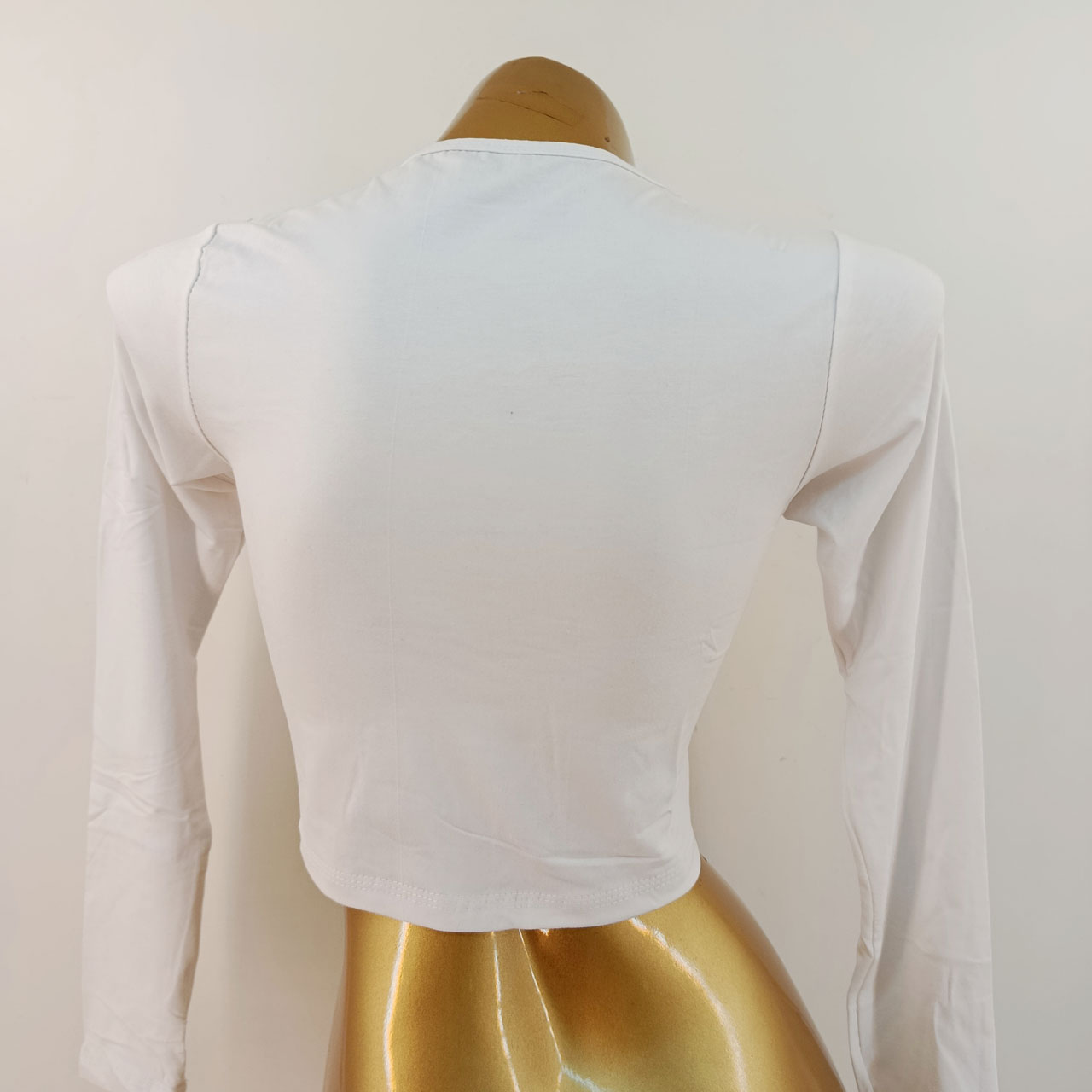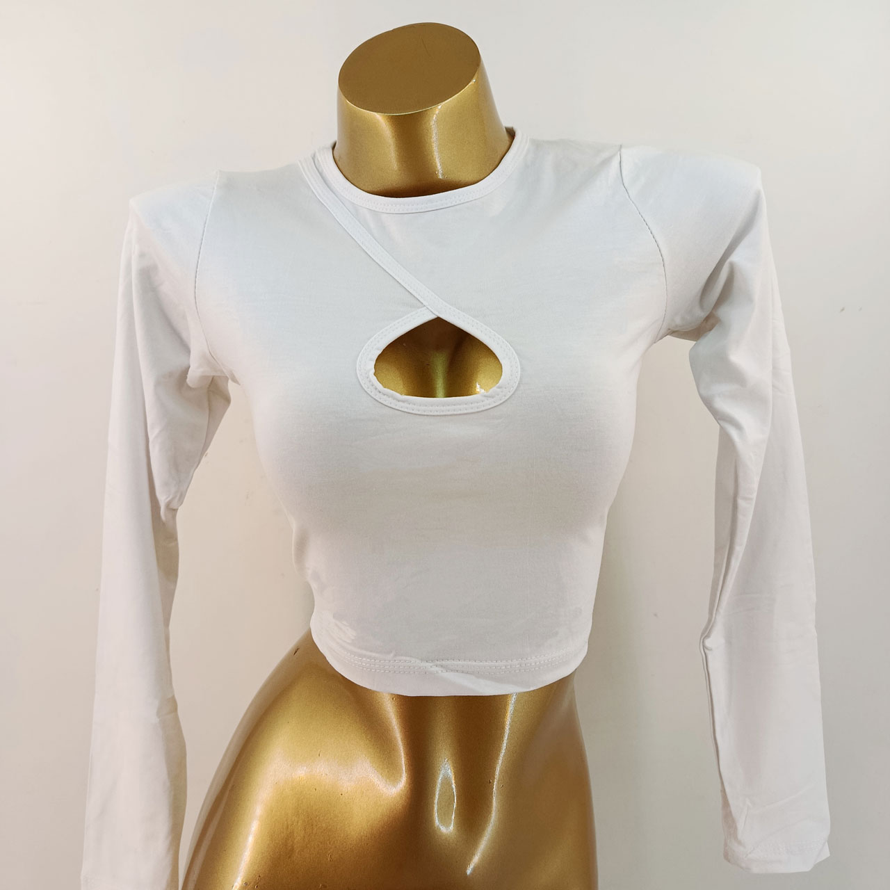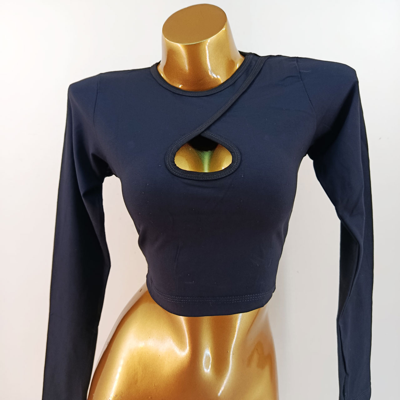 کراپ یقه گرد آستین بلند کبریتی نیلا مدل 8007